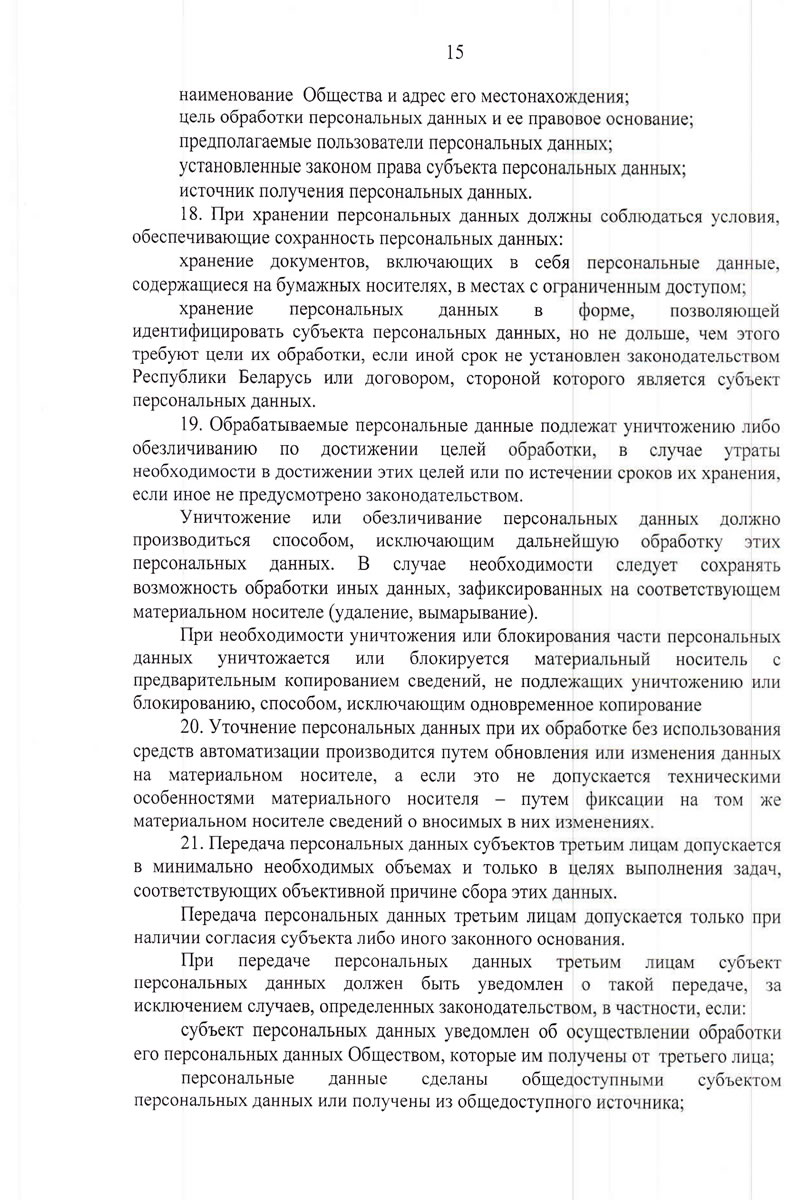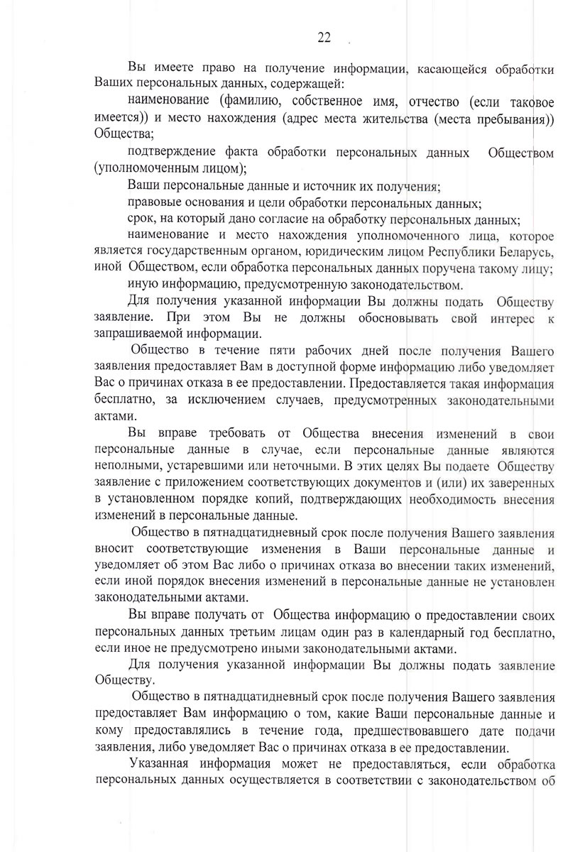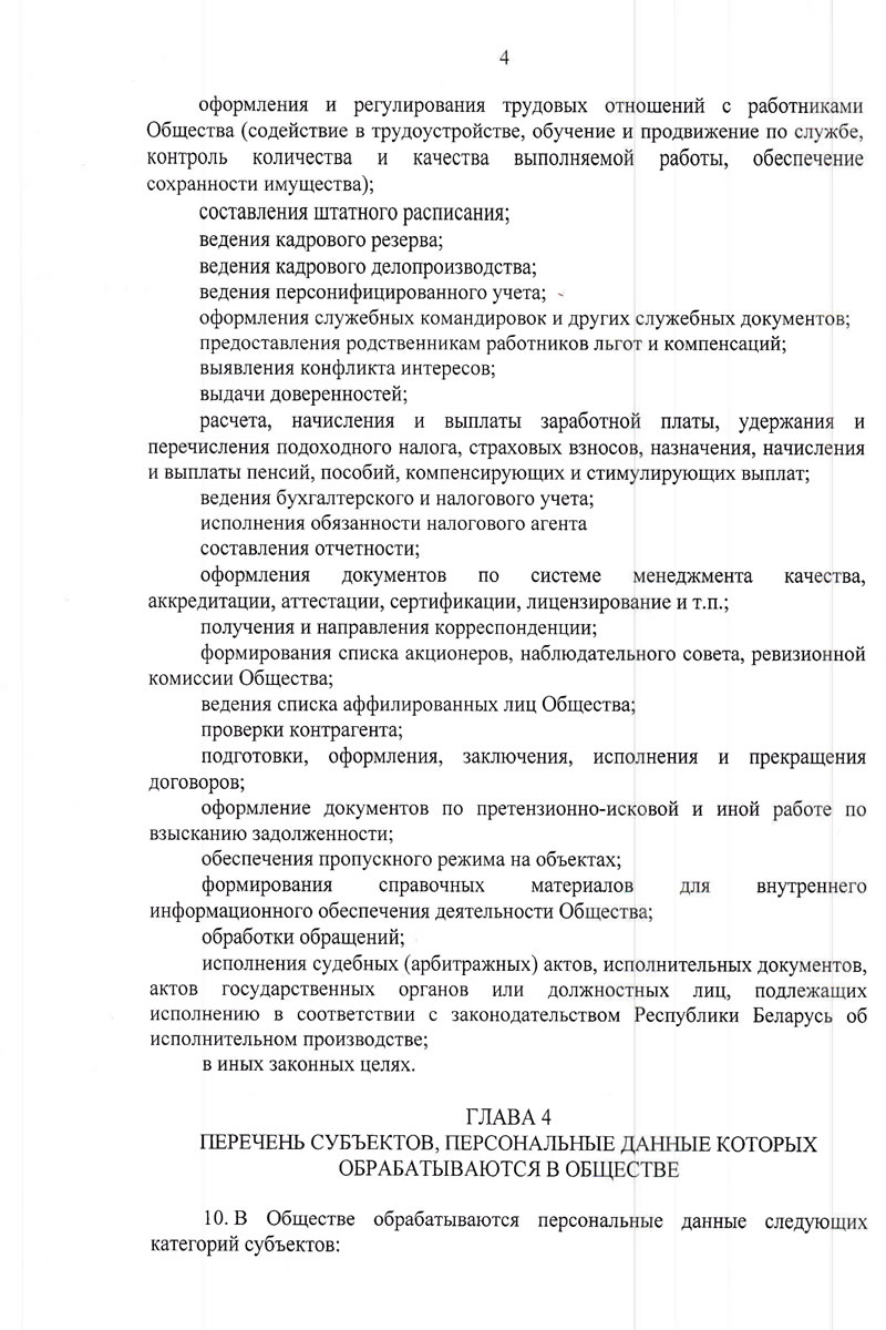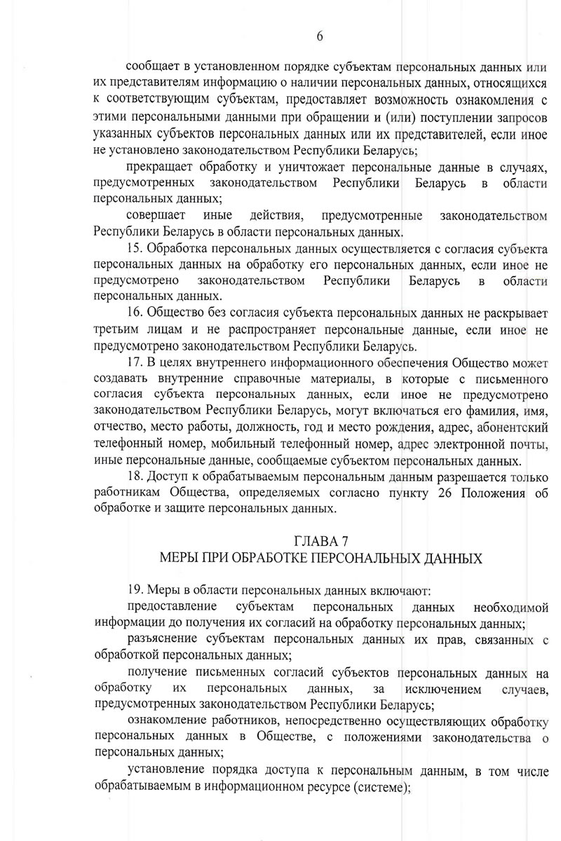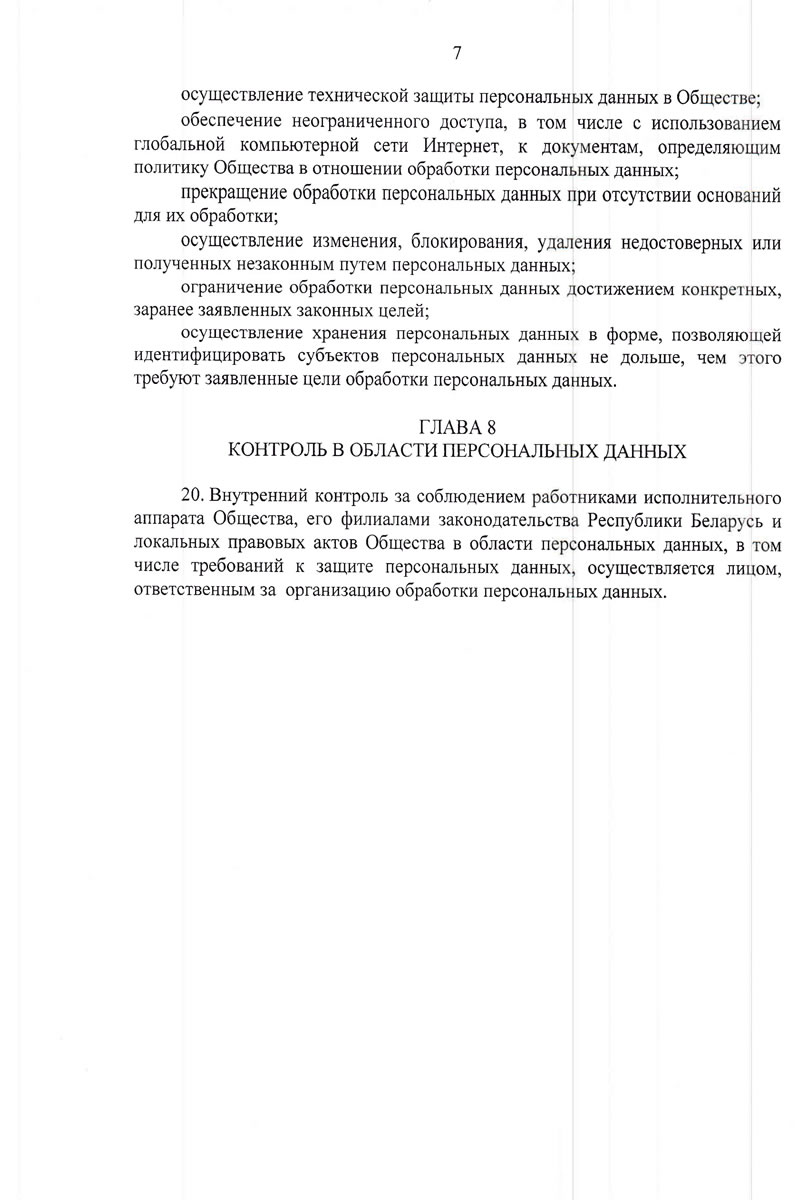Приложение к приказу генерального директора от 11.03.2022 № 41 ПОЛИТИКА ОАО «Трест Белсантехмонтаж № 1» в отношении обработки персональных данных ГЛАВА 1 ОБЩИЕ ПОЛОЖЕНИЯ 1. Политика ОАО «Трест Белсантехмонтаж № 1» (далее - Общество) в отношении обработки персональных данных (далее - Политика) определяет принципы, цели, условия обработки персональных данных, требования к защите персональных данных. 2. Политика разработана с учетом требований Конституции Республики Беларусь, законодательных и иных нормативных правовых актов Республики Беларусь в области защиты персональных данных. 3. Положения Политики служат основой для разработки локальных правовых актов, регламентирующих вопросы обработки персональных данных работников и других субъектов персональных данных. 4. Понятия, содержащиеся в статье 1 Закона Республики Беларусь от 07.05.2021 №99-3 «О защите персональных данных», используются в настоящей политике с аналогичным значением. ГЛАВА 2 ОСНОВЫ ПОЛИТИКИ ОБРАБОТКИ ПЕРСОНАЛЬНЫХ ДАННЫХ 5. Политика определяется в соответствии со следующими нормативными правовыми актами: Конституция Республики Беларусь; Трудовой кодекс Республики Беларусь; Закон Республики Беларусь от 07.05.2021 № 99-3 «О защите персональных данных» (далее - Закон о защите персональных данных); Закон Республики Беларусь от 21.07.2008 №418-3 «О регистре населения»; Закон Республики Беларусь от 10.11.2008 № 455-3 «Об информации, информатизации и защите информации»; иные нормативные правовые акты Республики Беларусь. 6. В целях реализации Политики применяются: Положение об обработке и защите персональных данных (приложение); локальные правовые акты, регламентирующие вопросы обработки персональных данных. ГЛАВА 3 ПРИНЦИПЫ И ЦЕЛИ ОБРАБОТКИ ПЕРСОНАЛЬНЫХ ДАННЫХ 7. Общество осуществляет обработку персональных данных работников Общества и других субъектов персональных данных, не состоящих с Обществом в трудовых отношениях. 8. Обработка персональных данных осуществляется с учетом необходимости обеспечения защиты прав и свобод работников Общества и других субъектов персонапьных данных, в том числе защиты права на неприкосновенность частной жизни, личную и семейную тайну, на основе следующих принципов: обработка персональных данных осуществляется на законной и справедливой основе; обработка персональных данных осуществляется соразмерно заявленным целям их обработки и обеспечивает на всех этапах такой обработки справедливое соотношение интересов всех заинтересованных лиц; обработка персональных данных осуществляется с согласия субъекта персональных данных, за исключением случаев, предусмотренных законодательными актами; обработка персональных данных ограничивается достижением конкретных, заранее заявленных законных целей. Не допускается обработка персональных данных, не совместимая с первоначально заявленными целями их обработки; содержание и объем обрабатываемых персональных данных соответствуют заявленным целям их обработки. Обрабатываемые персональные данные не являются избыточными по отношению к заявленным целям их обработки; обработка персональных данных носит прозрачный характер. Субъекту персональных данных может предоставляться соответствующая информация, касающаяся обработки его персональных данных; обеспечение достоверности обрабатываемых персонал